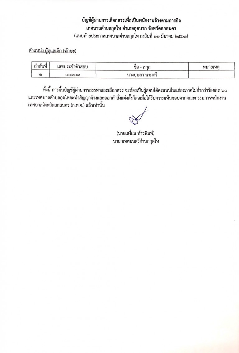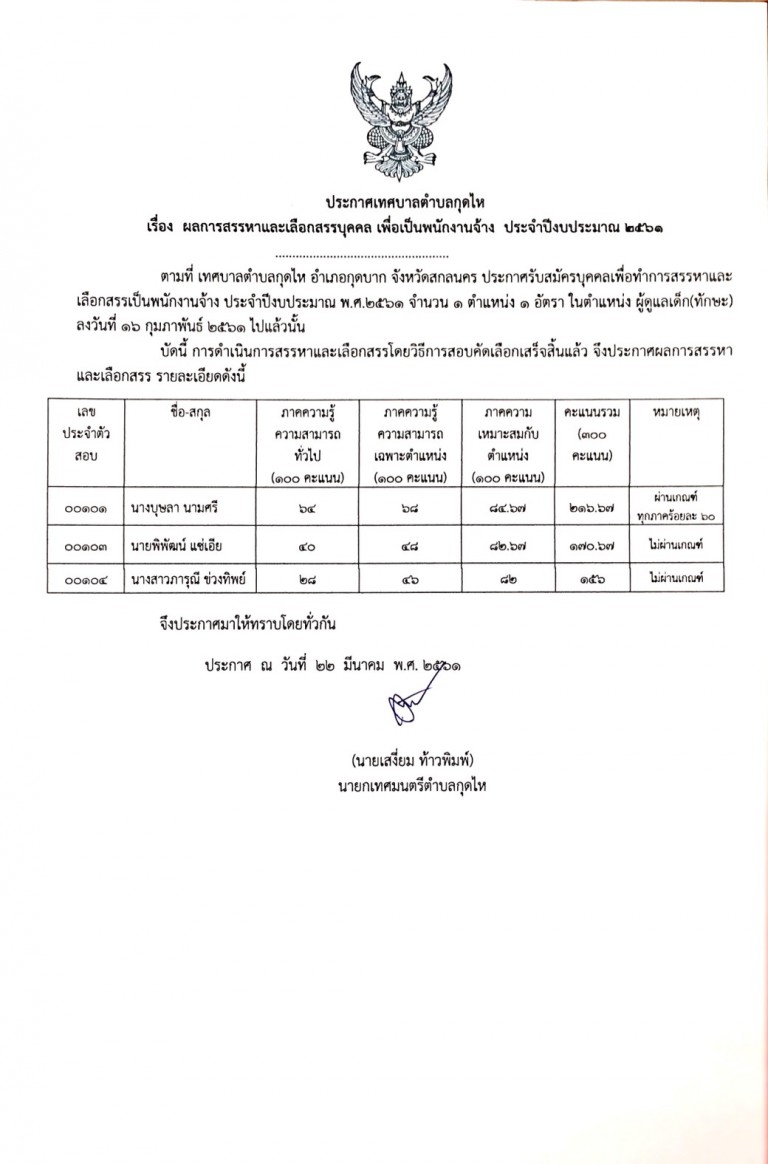 ประกาศ ผลการสรรหาและเลือกสรรบุคคล เพื่อเป็นพนักงานจ้างประจำปีงบประมาณ 2561