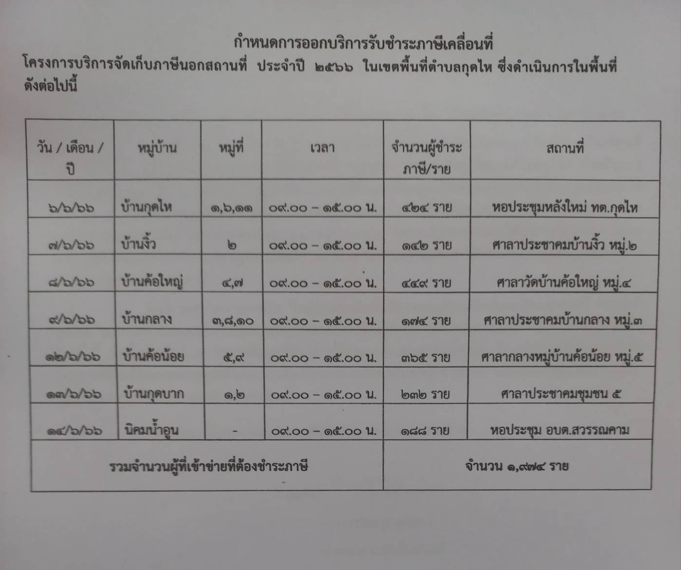 ชื่อเรื่อง : โครงการจัดเก็บภาษีเคลื่อนที่ ประจำปี 2566