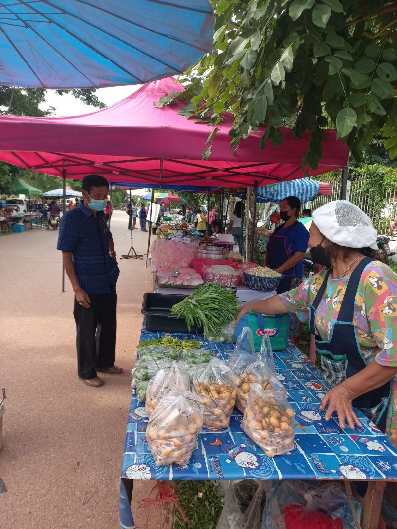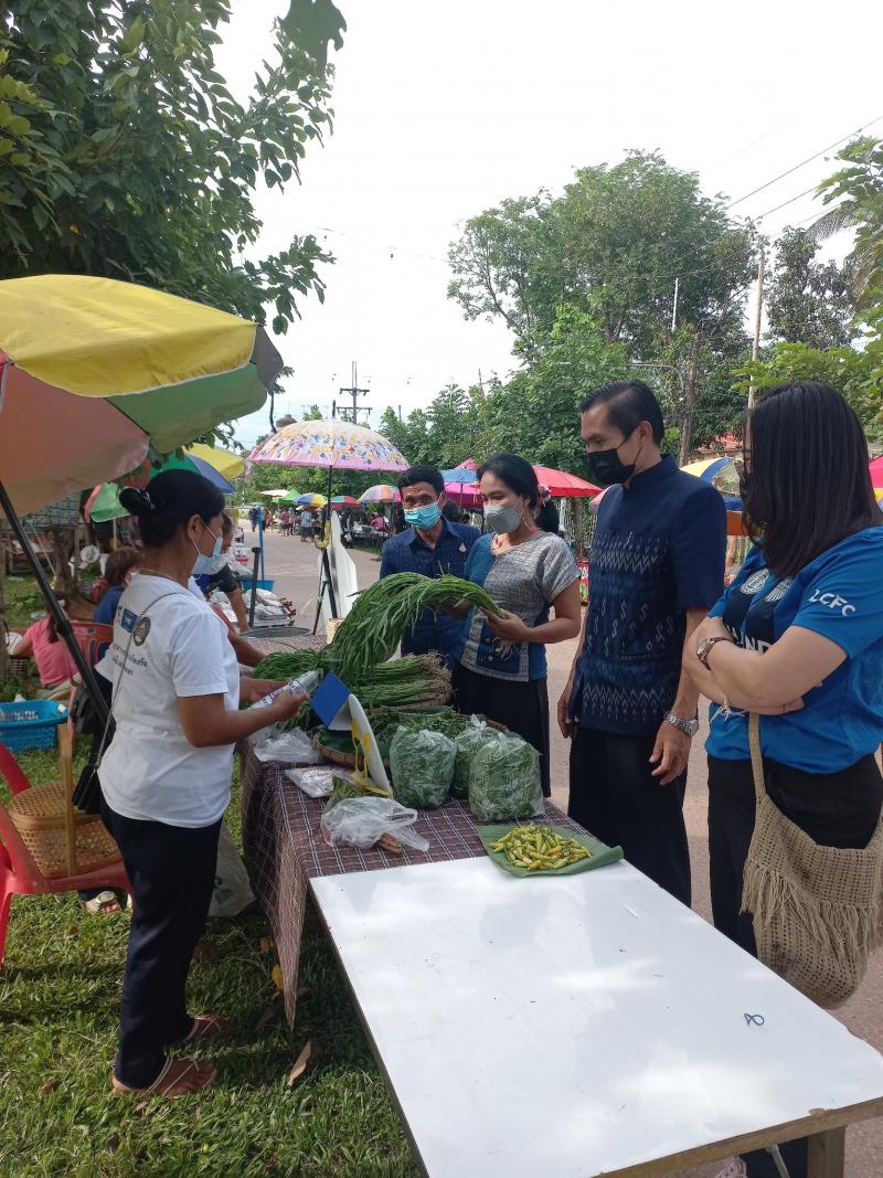 นายวิชา ข่วงทิพย์ นายกเทศมนตรีตำบลกุดไห หัวหน้าส่วนราชการ พนักงานเทศบาลตำบลกุดไหและผู้นำชุมชนตำบลกุดไห เยี่ยมชมและอุดหนุนผักปลอดสารพิษจากกลุ่มผักแซ่บบึงอาคะ ณ ถนนคนเดินอำเภอกุดบาก ตามโครงการส่งเสริมการตลาดสินค้าเกษตรปลอดภัย ประจำปีงบประมาณ 2565